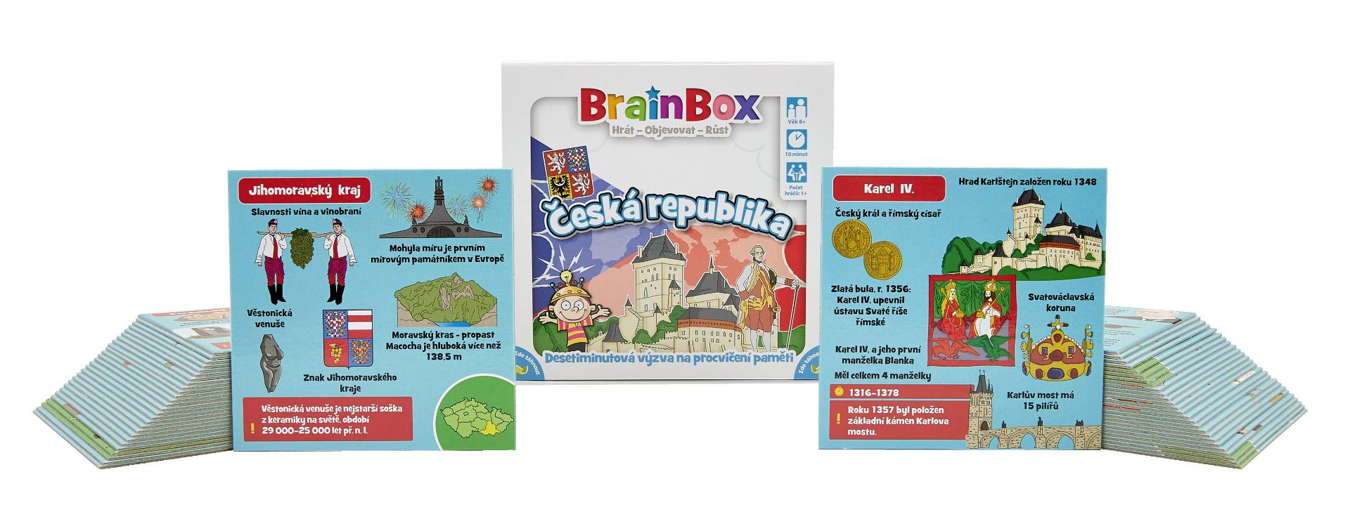 Objavte Slovensko s hrou "BrainBox - Slovensko"! Táto zábavná kartová hra na pamäť a pozornosť preverí vaše schopnosti zapamätať si detaily počas 10 sekúnd. Slovenské vydanie hračky obsahuje geografické a historické informácie, ktoré formovali Slovensko. BrainBox Slovensko obsahuje 55 hracích kariet, z ktorých každá predstavuje iné miesto, okres, osobu alebo významný moment z minulosti či súčasnosti. Karty sú krásne ručne ilustrované s realistickými výjavmi a zaujímavými faktami, ktoré obohacujú vaše vedomosti o Slovensku. Hra pomáha deťom učiť sa o ich vlasti a zároveň rozvíja ich kognitívne pozorovacie a pamäťové zručnosti, ktoré sú základom pre celoživotné vzdelávanie. Ako na to? Stačí si vziať kartu, zapamätať si čo najviac detailov počas 10 sekúnd, hodiť kockou a odpovedať na otázku súvisiacu s kartou. Balenie obsahuje 55 kariet, pravidlá, presýpacie hodiny a kocku. Pripravte sa na učenie a zábavu s BrainBox Slovensko!