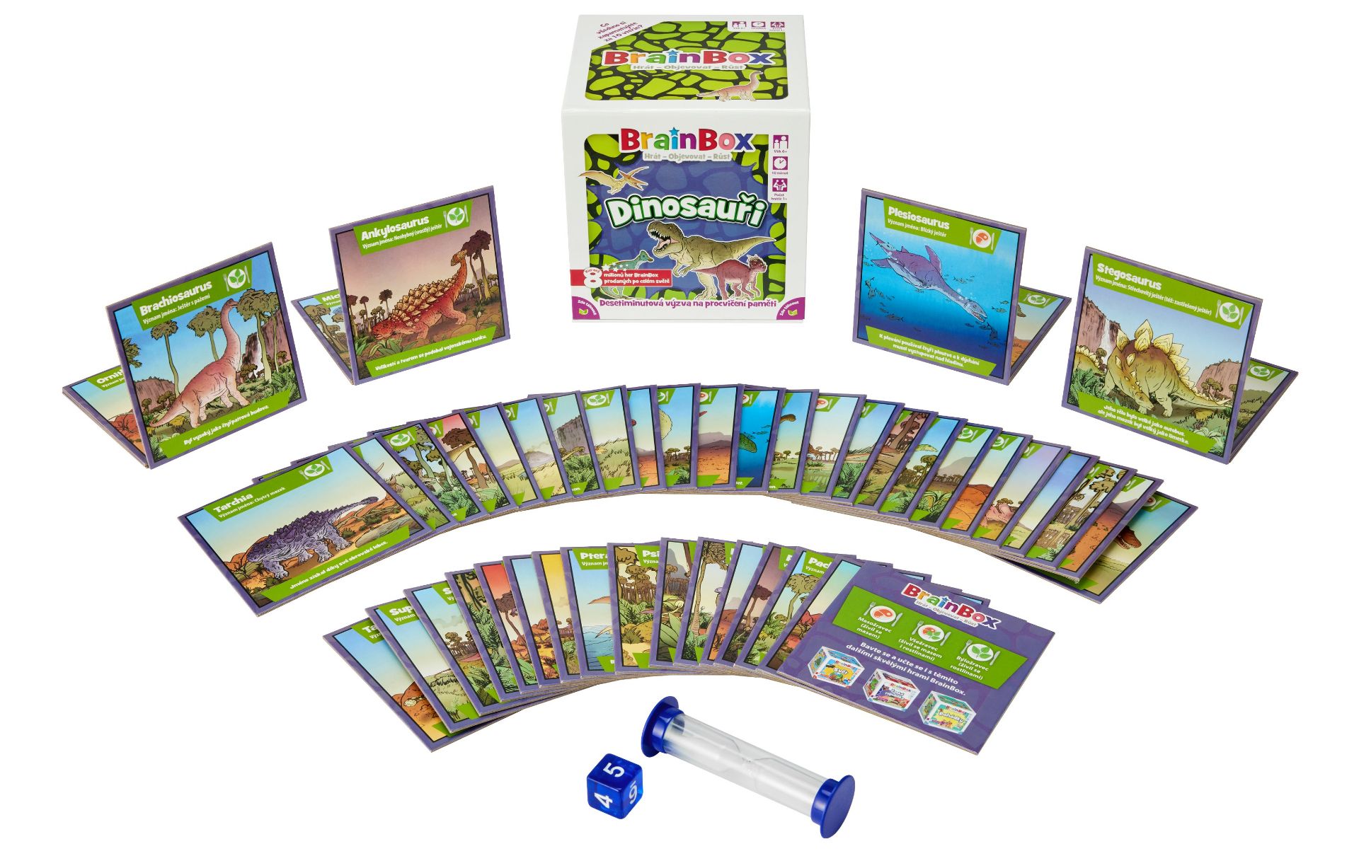 Objevte fascinující svět s hrou "BrainBox - Svět"! Tato zábavná paměťová a postřehová karetní hra vás vyzve k tomu, abyste otestovali své znalosti o zemích celého světa. Budete mít pouhých 10 vteřin na to, abyste si zapamatovali co nejvíce z karty, která obsahuje klíčové informace o jednotlivých zemích. BrainBox Svět se skládá z 55 hracích karet, které představují různé země, od Velké Británie přes Řecko až po Thajsko a Mexiko. Každá karta obsahuje mapu země s vyznačeným hlavním městem a ručně malované ilustrace, které zobrazují to nejzajímavější a typické pro danou zemi. Hra nejenže pomáhá dětem získat více informací o světě kolem nich, ale také rozvíjí důležité kognitivní dovednosti, jako je postřeh a schopnost vybavovat si vzpomínky, což je klíčové pro celoživotní učení. Jak na to? Vezměte si kartu, zapamatujte si co nejvíce detailů za 10 vteřin, hodte kostkou a odpovězte na otázku související s kartou. Balení obsahuje 55 karet, pravidla, přesýpací hodiny a kostku. Připravte se na dobrodružství plné objevování a zábavy s BrainBox Svět!