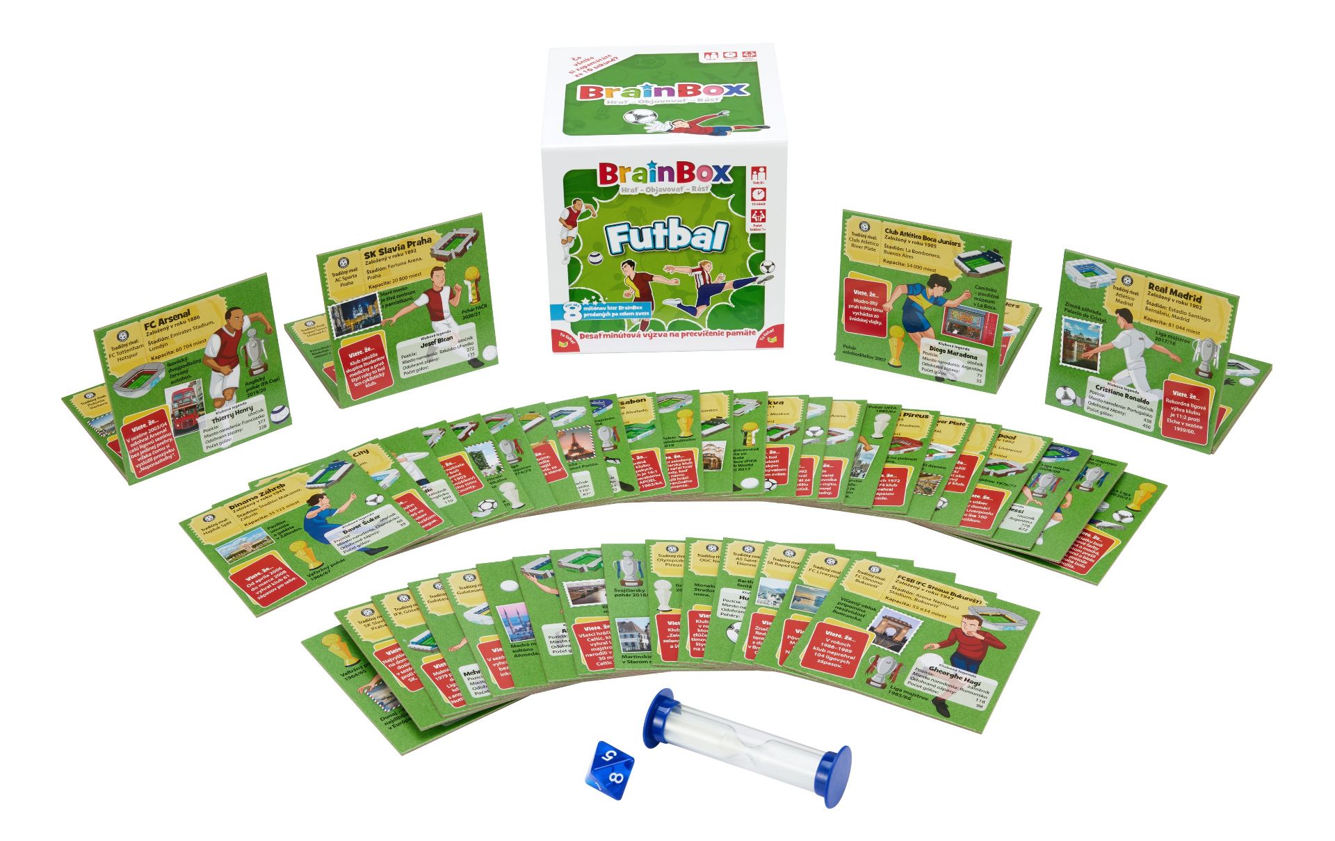 Vstupte do světa fotbalu s hrou "BrainBox - Fotbal"! Tato zábavná paměťová a postřehová karetní hra otestuje vaši schopnost zapamatovat si detaily během 10 vteřin. Hráči mají na kartě odpovědi na otázky, které se týkají nejznámějších fotbalových týmů světa, jejich stadionů a klubových legend, včetně českých klubů SK Slavia Praha a AC Sparta Praha. Hra obsahuje 55 hracích karet s ručně malovanými ilustracemi, které obohatí znalosti malých i velkých fanoušků fotbalu. BrainBox Fotbal pomáhá rozvíjet kognitivní dovednosti, jako je postřeh a paměť, což přispívá k celoživotnímu vzdělávání. Jak na to? Stačí si vzít kartu, zapamatovat si co nejvíce detailů během 10 vteřin, hodit kostkou a odpovědět na otázku související s kartou. Balení obsahuje 55 karet, pravidla, přesýpací hodiny a kostku. Připravte se na vzrušující a zábavné chvilky plné fotbalového povyku!