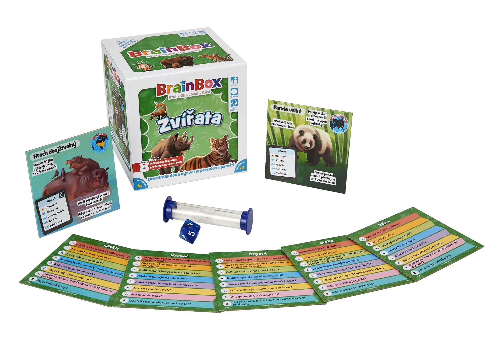 BrainBox je zábavná paměťová a postřehová karetní hra, která prověří váš smysl pro detail a zapojí celou rodinu. V této edici, věnované domácím mazlíčkům, máte možnost se seznámit s mnoha zvířátky a naučit se o různých plemenech psů, koček, plazů a hlodavců. Hráči mají pouhých 10 vteřin na zapamatování informací z krásně ilustrovaných karet. Hra podporuje rozvoj kognitivních dovedností a nabízí skvělou zábavu pro děti i dospělé. Balení obsahuje 55 hracích karet, přesýpací hodiny a kostku.