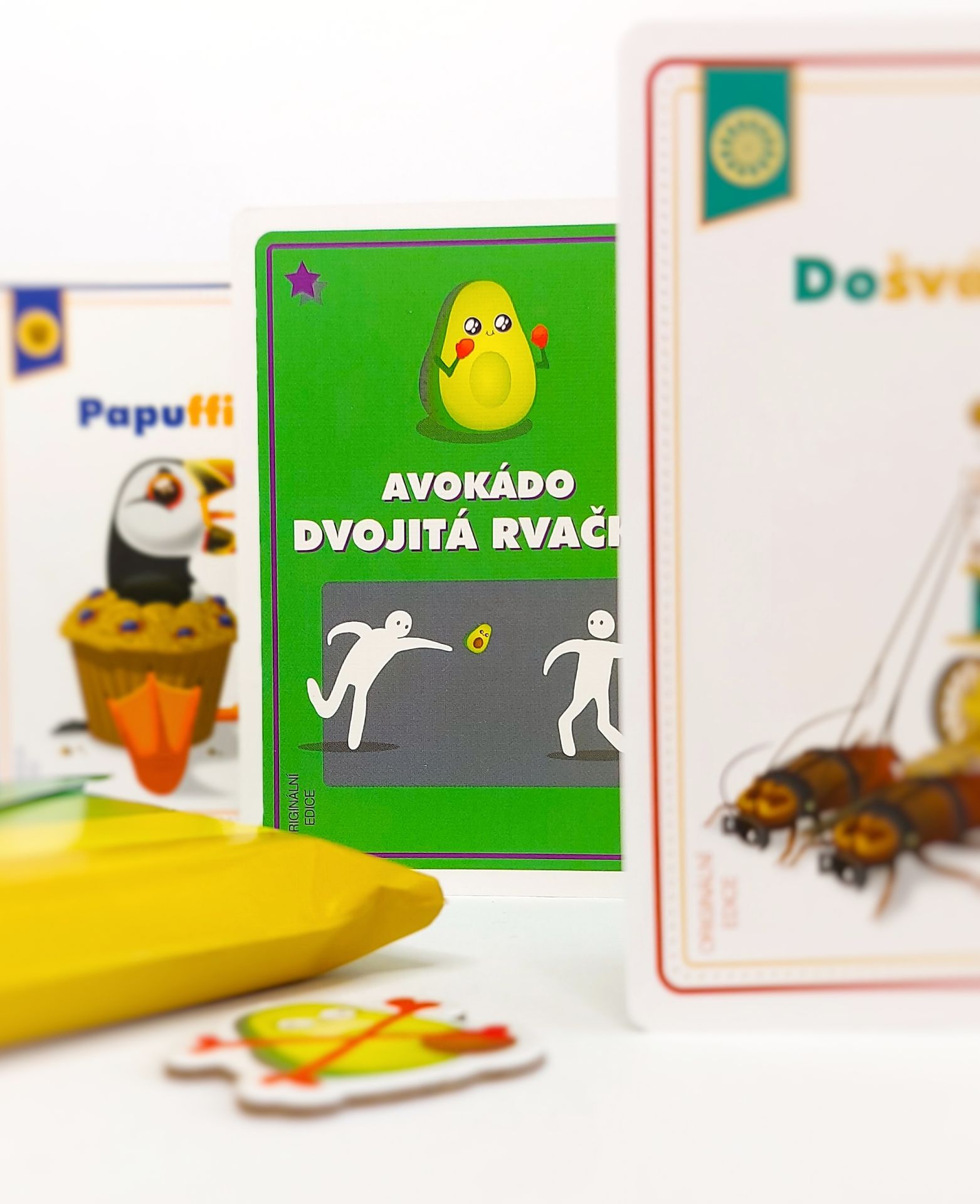 Představujeme vám úplně první karetní hru od tvůrců Výbušných koťátek a Bum Bum Burrita, která přináší šermířské souboje pomocí měkkých mečů. V této hře se hráči hádají o karty a řeší své spory údery pěnovými meči... přesně tak, jak to dělají dospělí! Jak na hru? Hra je jednoduchá! Cílem je sesbírat 3 shodné karty. Když potřebujete stejnou kartu jako jiný hráč, musíte o ni bojovat! Vezměte si určité množství karet a položte je na hromádky uprostřed stolu. Každý hráč si prohlédne karty na stole a určí, která hromádka mu pomůže dokončit jeho sadu. Jakmile se rozhodnete, kterou hromádku chcete, napočítejte do 3 a všichni současně ukažte na vybranou hromádku. Pokud jste jediní, kdo na hromádku ukázal, získáváte všechny karty na této hromádce. Pokud však na hromádku ukáže i jiný hráč, musíte se o ni utkat pomocí mečů. Pravidla pro tuto bitvu jsou popsána na hromádce karet, o kterou bojujete. Hrajte dále, dokud jeden z hráčů nezíská 3 sady stejných karet. Ten se stává vítězem hry! Tato hra je skvělá pro děti i dospělé a můžete ji hrát kdykoli během dne nebo večera. Věk a výška nehraji roli! Hlavní je, jestli máte chuť se pobavit a zasmát při „boji“ s falešnými meči. Užijte si spoustu zábavy a napětí s touto jedinečnou hrou, která přinese smích a soutěžení do vašich setkání s přáteli a rodinou!