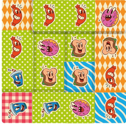 Získejte co nejvíce bodů chytrým pokládáním karet a seskupováním stejných druhů dobrůtek a ubrousků. Hra obsahuje 2 varianty a sólo mód.