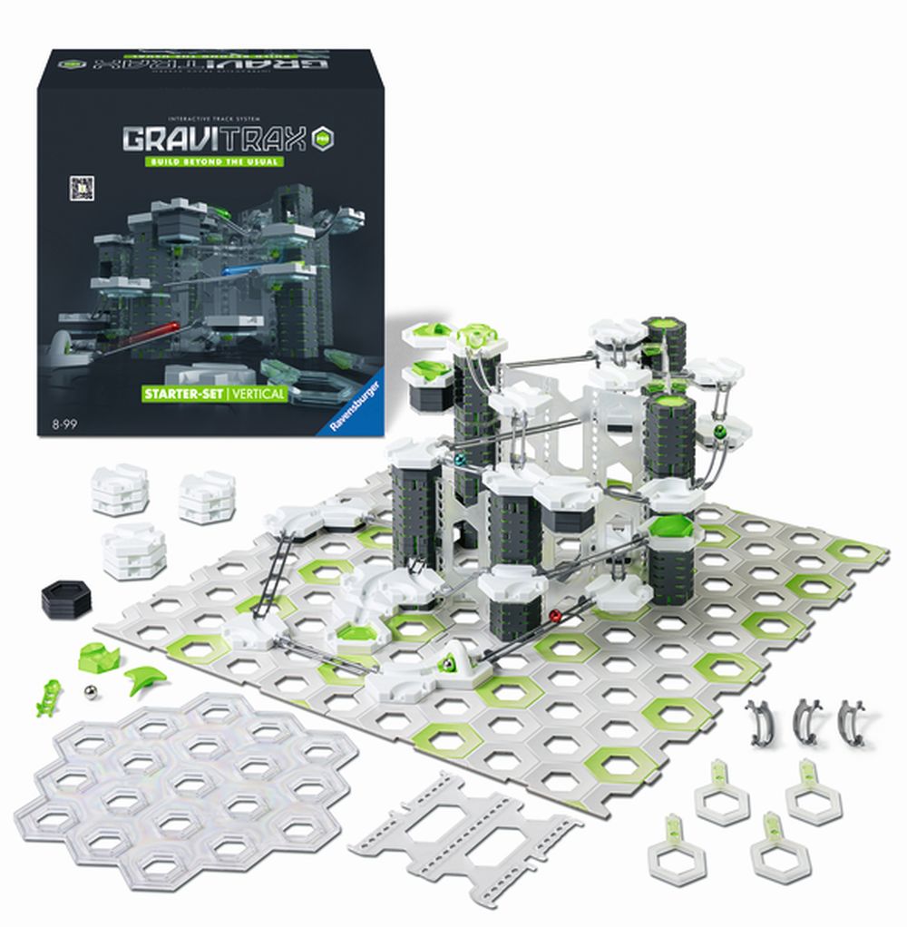Startovní sada GraviTrax Pro posune vaši dráhu o další stupeň výš. Tato sada s novými akčními díly umožňuje budovat vaši stavbu do výšky a napínavě tak překonávat různé výškové rozdíly a vést kuličky mezi jednotlivými patry nejen standardní cestou. Zkuste nechat projet kuličku skrz zeď a uvidíte, co se stane. Stavte nové tratě plné jedinečných výzev.
