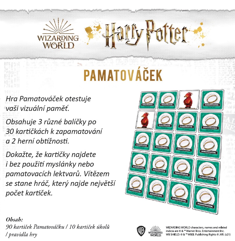 Nezabudalo je vzrušující hra, která prověří vaši paměť a schopnost najít kartičky s oblíbenými postavami a kouzelnými předměty ze světa čar a kouzel, a to i bez použití myslánky nebo kouzelných lektvarů. Vítězem se stane hráč, který najde největší počet kartiček!