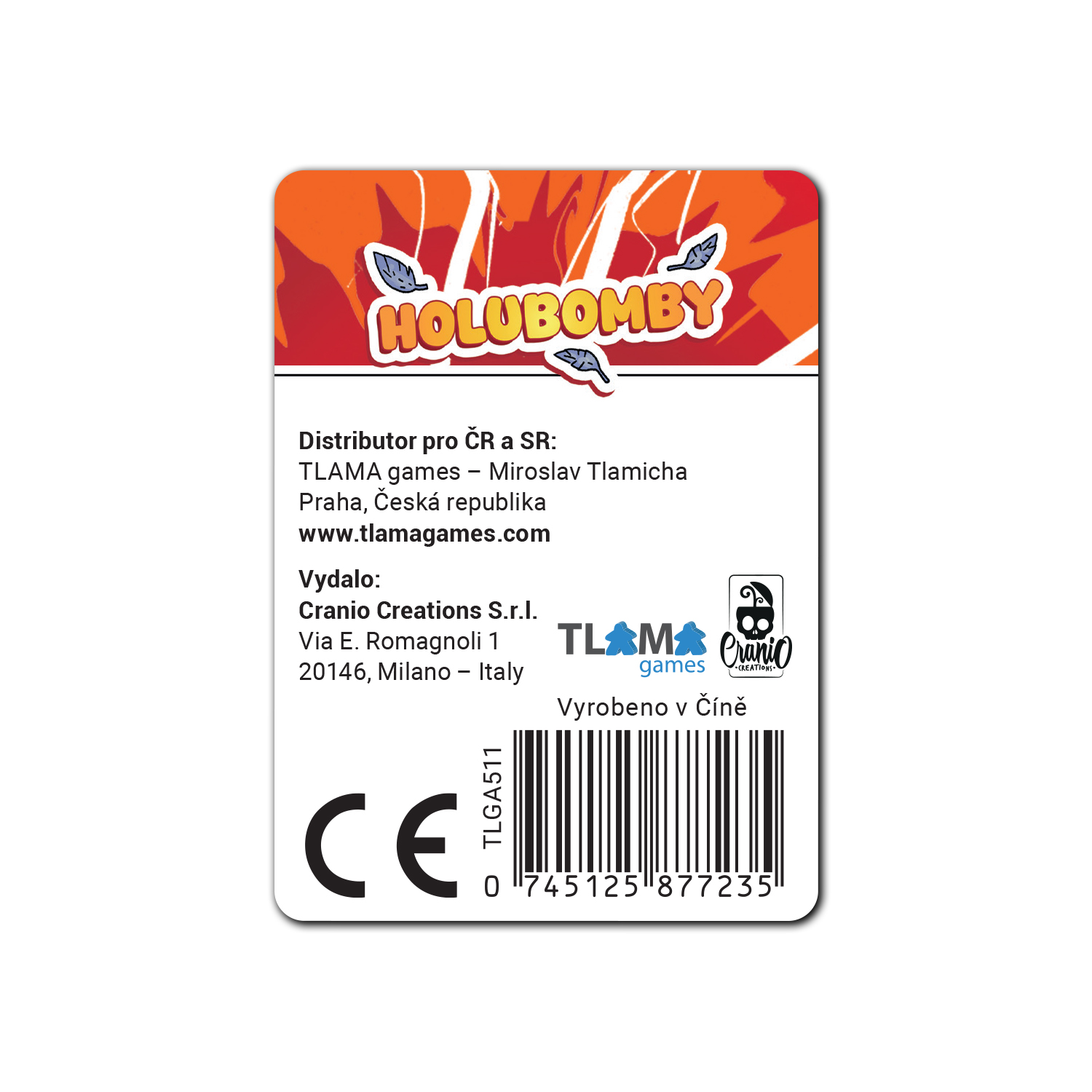 Šílená karetní hra s vybuchujícími holuby může být ještě šílenější s těmito promo kartami, které můžete přidat do základní hry. Karta Bitka donutí všechny hráče poslat své karty sousedovi. Chilli odpraví holuba, pokud je na něj zahrána další modrá karta krmení, a Limča má sice hodnotu -2, ale váš holub vybouchne až při 5 různých barvách krmení. Rozšíření je určeno pro 2-5 hráčů od 8 let. Herní materiál a pravidla jsou v češtině. Počty a velikosti karet:4 ks 63x89 mm Nabídka obalů na karty je zde. Hra obsahuje: 2 karty hledání2 karty výbuchu1 karta pravidel