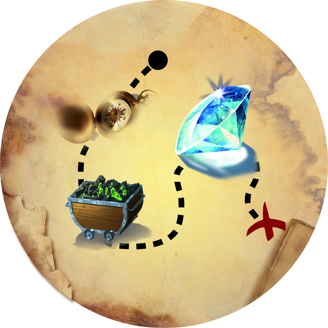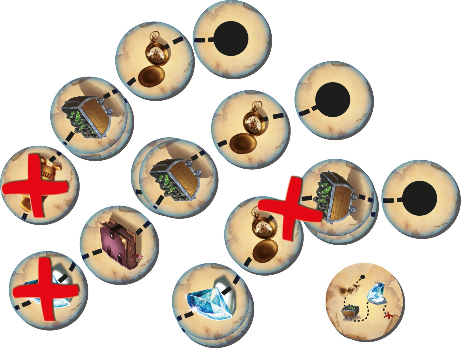 To, jaký poklad zrovna hráči hledají, určuje karta pokladu. Na té je vyobrazena cesta složená z jednotlivých ikon. Hráči se cestu snaží ze svých karet co nejrychleji sestavit. Pokud cesta obsahuje méně než šest ikon, musí přebývající karty schovat pod ostatní.