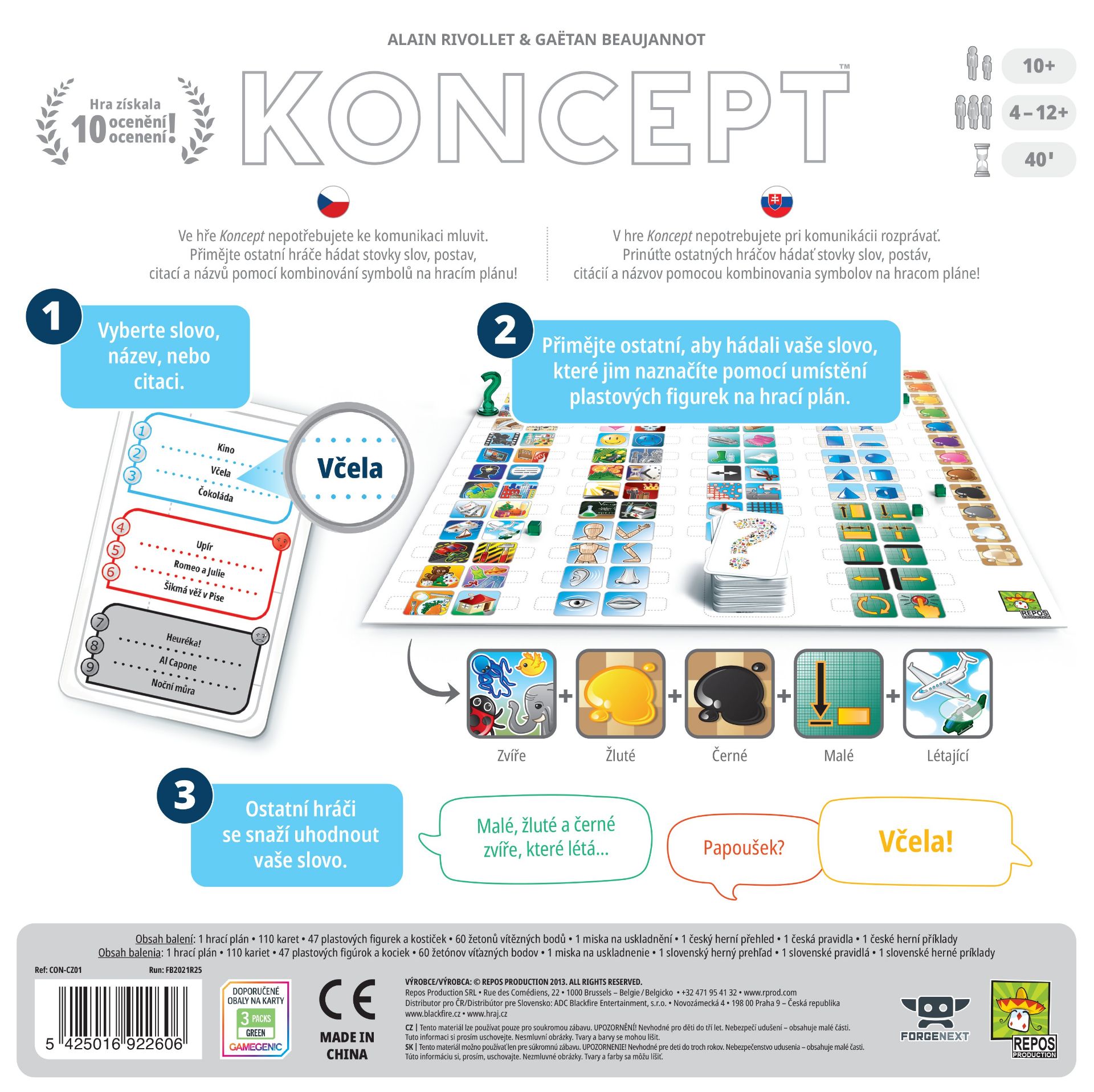 Zažijte zábavu a kreativitu s hrou Koncept! Tato intuitivní hra vás vyzve k uhodnutí slov prostřednictvím asociací ikon. Hráči, kteří sedí vedle sebe, si vyberou slovo nebo frázi, kterou ostatní potřebují uhodnout. Poté tento tým umisťuje figurky na dostupné ikony na herním plánu, aby nápověda byla co nejvíce jasná. Například, pokud chcete naznačit "mléko", umístíte ikonu otazníku (která představuje hlavní koncept) na ikonu pro tekutiny a přidáte kostky k ikonám pro