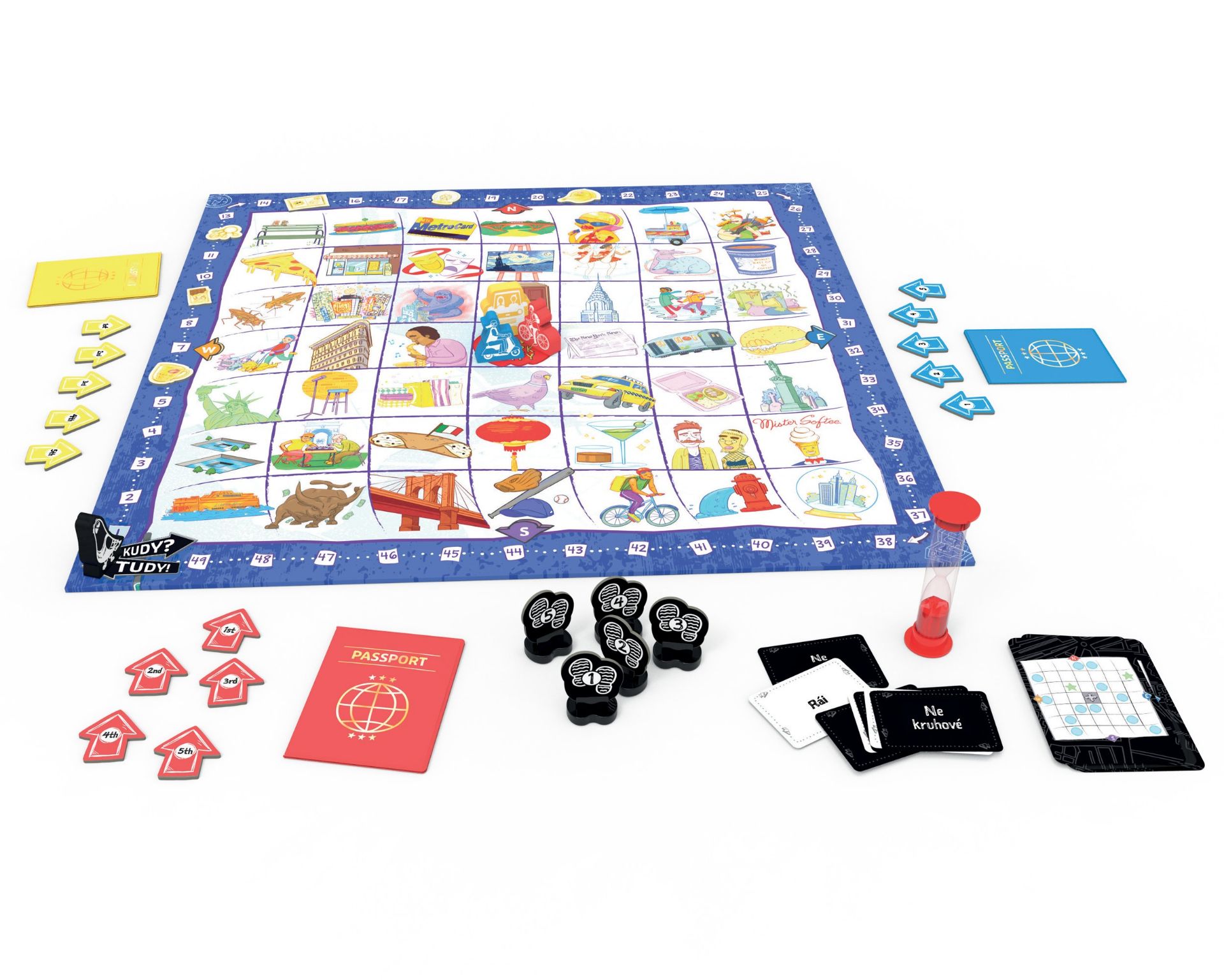 Zažijte dobrodružství s hrou udy? Tudy! Tato zábavná hra vás postaví do role cestovatelů, kteří hledají různé památky v cizím velkoměstě. Každý hráč má svou tajnou mapu míst, které chce navštívit, avšak kvůli omezené znalosti místního jazyka ovládá pouze několik slov. Obyvatelé města, tedy ostatní hráči, se pokusí uhodnout vaše nápovědy a pomohou vám dostat se tam, kam chcete, aniž byste se ztratili v překladu! Hráči se střídají v rolích cestovatele a domácího obyvatele, aby navštívili co nejvíce památek. Po cestě sbíráte zlaté suvenýry, které naleznete, ale musíte používat jen pár slov k tomu, abyste ostatním vysvětlili, kam se chcete dostat.