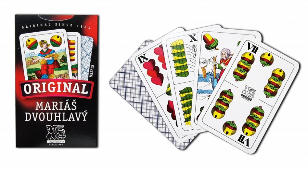 Klasické dvouhlavé mariášové karty s rubem kára.