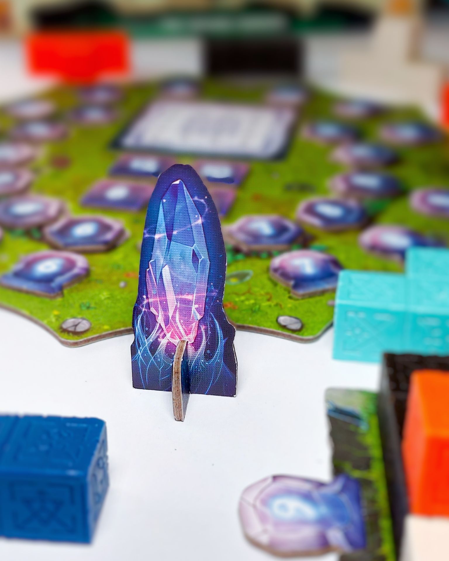 Místo pohybu krystalu můžete zvolit žeton proroctví z hlavního plánu a přidat ho konečně na jednu stranu své desky hráče. Každá deska hráče má čtyři různé barvy kolem čtyř okrajů, např. modrou, oranžovou, černou a tyrkysovou.
