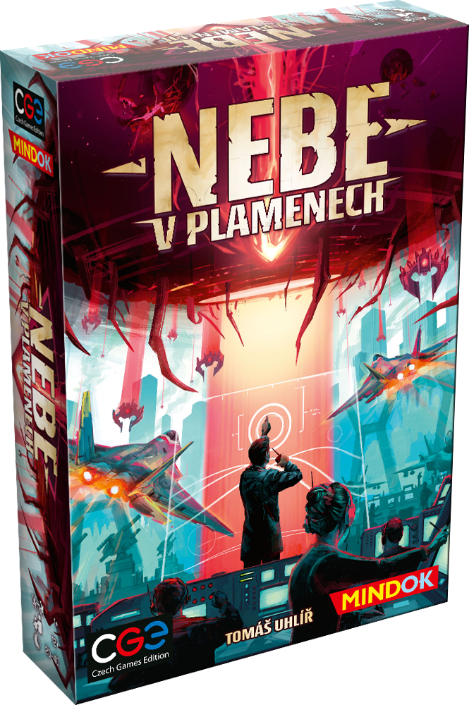 Nebe v plamenech je napínavá sólová hra, která vás vtáhne do boje proti mimozemské armádě, jež se chystá obsadit Zemi. Když se nebe zastíní nepřátelskými letouny, lidstvo se stáhne do podzemních bunkrů pod městy po celém světě. Jako velitel obrany se postavíte proti této hrozbě, abyste ochránili svou planetu. Hra obsahuje kampaň na více misí, ve které řídíte obranu obléhaného města. Inovativní mechanismus umístění kostek umožňuje, že při výběru akce určujete, které nepřátelské lodě sestoupí. Větší čísla poskytují silnější efekty, ale s sebou přinášejí i rychlejší sestup lodí, což zvyšuje obtížnost. Rozšiřujte svou podzemní základnu, abyste získali přístup k mocnějším akcím, jako je sestřelování nepřátelských lodí nebo nasazení robotů pro zvýšení pracovní síly. Nezapomeňte také na výzkum a sledování zásob energie, abyste mohli efektivně reagovat na neustále se blížící mateřskou loď, která zvyšuje napětí v každém kole. Dokážete splnit svou misi dříve, než bude vaše základna zničena? Hra vychází ze hry print & play, která zvítězila v soutěži 9-card Nanogame P&P Design Contest v roce 2019. Nyní přináší plnou kampaň s rozšířeným obsahem pro hodiny intenzivní zábavy. Oficiální pravidla si můžete přečíst v [tomto odkazu](https://czechgames.com/files/rules/under-falling-skies-rules-en.pdf).