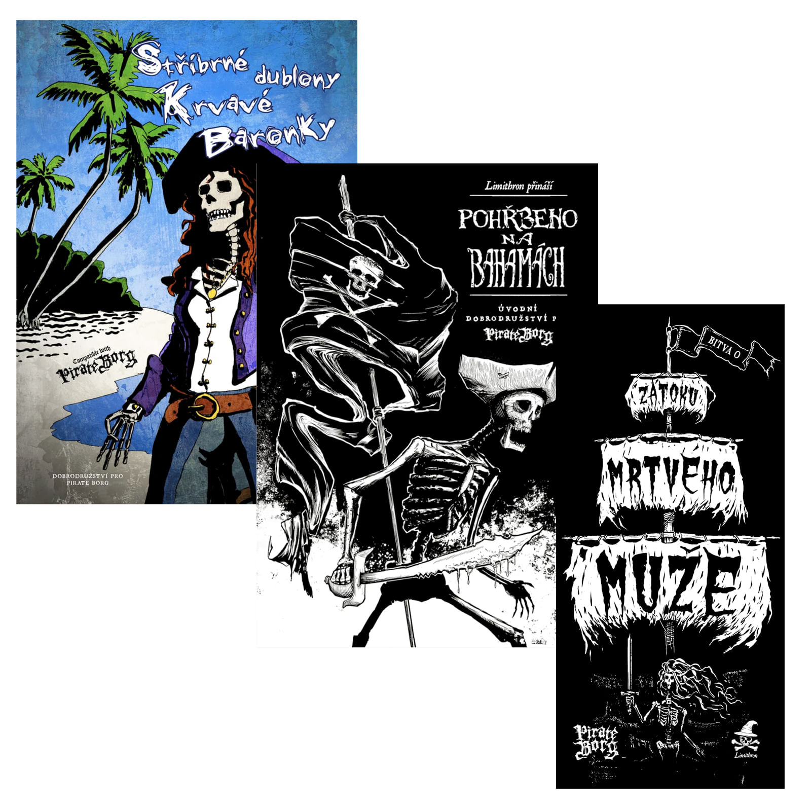 Hej, suchozemská kryso! Chceš slevu, co? Tak poslouchej. Mám tu pro tebe balík, co ti rozbuší srdce víc než basa grogu! Tři příběhy z prohnilýho a prosolenýho světa Pirate Borg, a to všechno za pár zatracenejch dublonů!