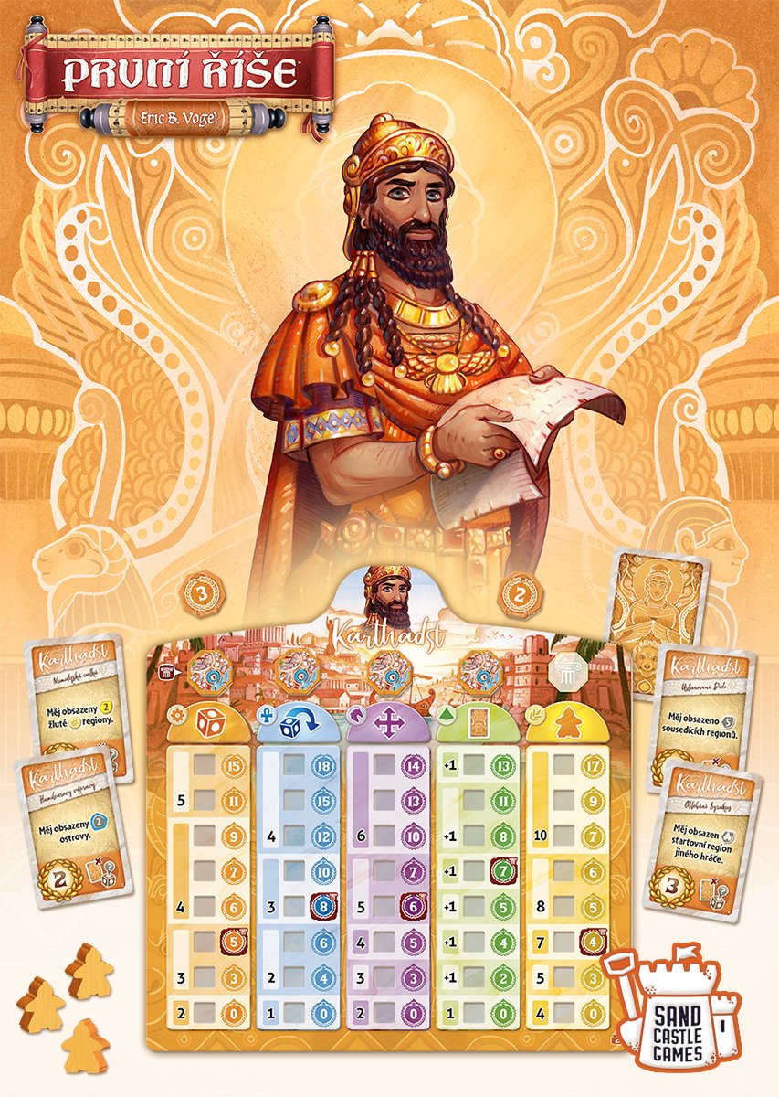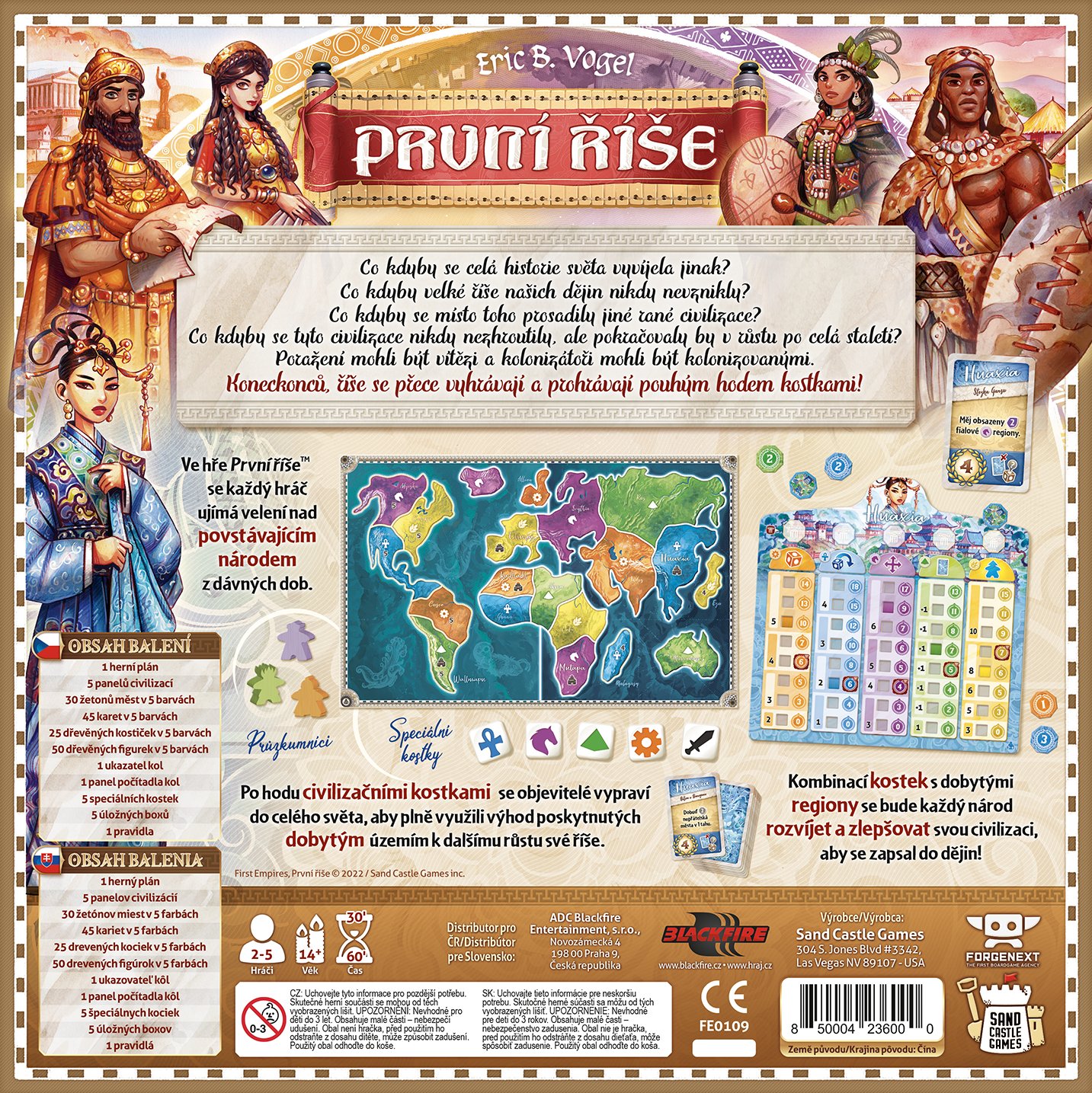 Co kdyby historie světa vypadala jinak? Co kdyby velké říše nevznikly a na jejich místo nastoupily zapomenuté civilizace? Představte si svět, kde vítězové mohli být poraženými a kolonizátoři kolonizovanými. V deskové hře První říše se historie přepisuje každým hodem kostkami!
