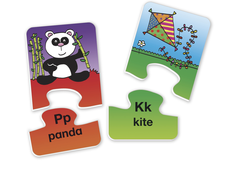 Celkem lze z dílků složit 26 párů puzzlí, jež znázorňují anglická slovíčkaAby se Vaše dítě nemohlo splést, zapadají do sebe jen správně sestavené dílky