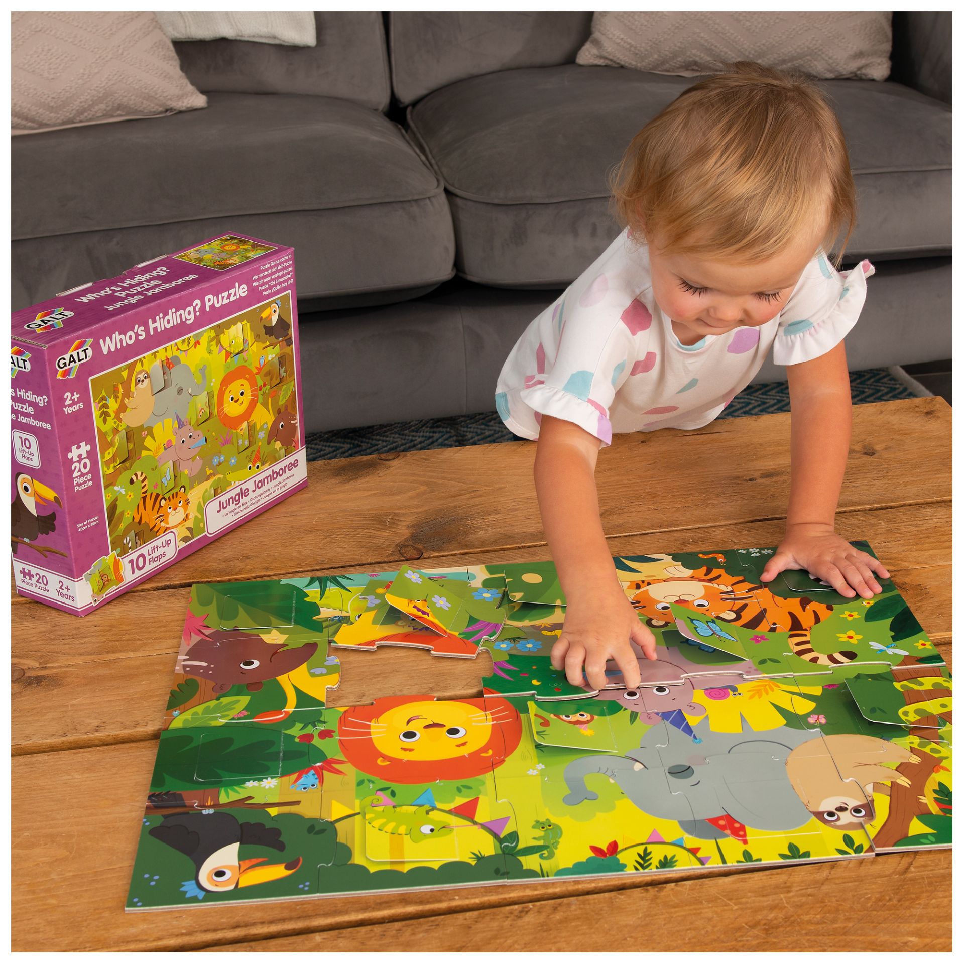 Tyto puzzle přináší zábavné scény z džungle s otevíracími okénky, které dětem umožňují prozkoumat, co se pod nimi skrývá