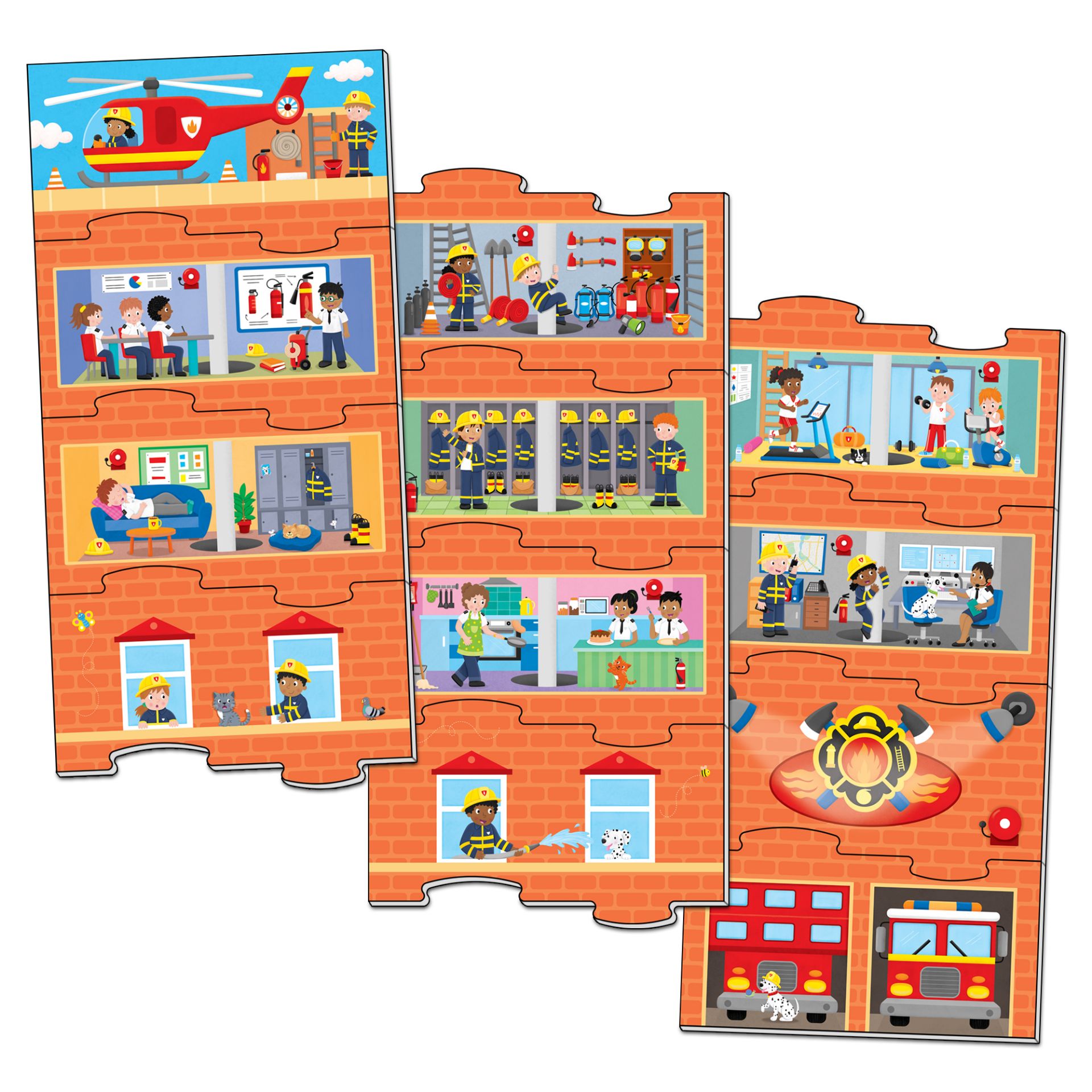 Děti mohou začít s dolním dílkem a připojit 10 dalších dílků v libovolném pořadí, následovaných vrchním dílkem, a vytvořit si tak svou požární stanici pokaždé jinou