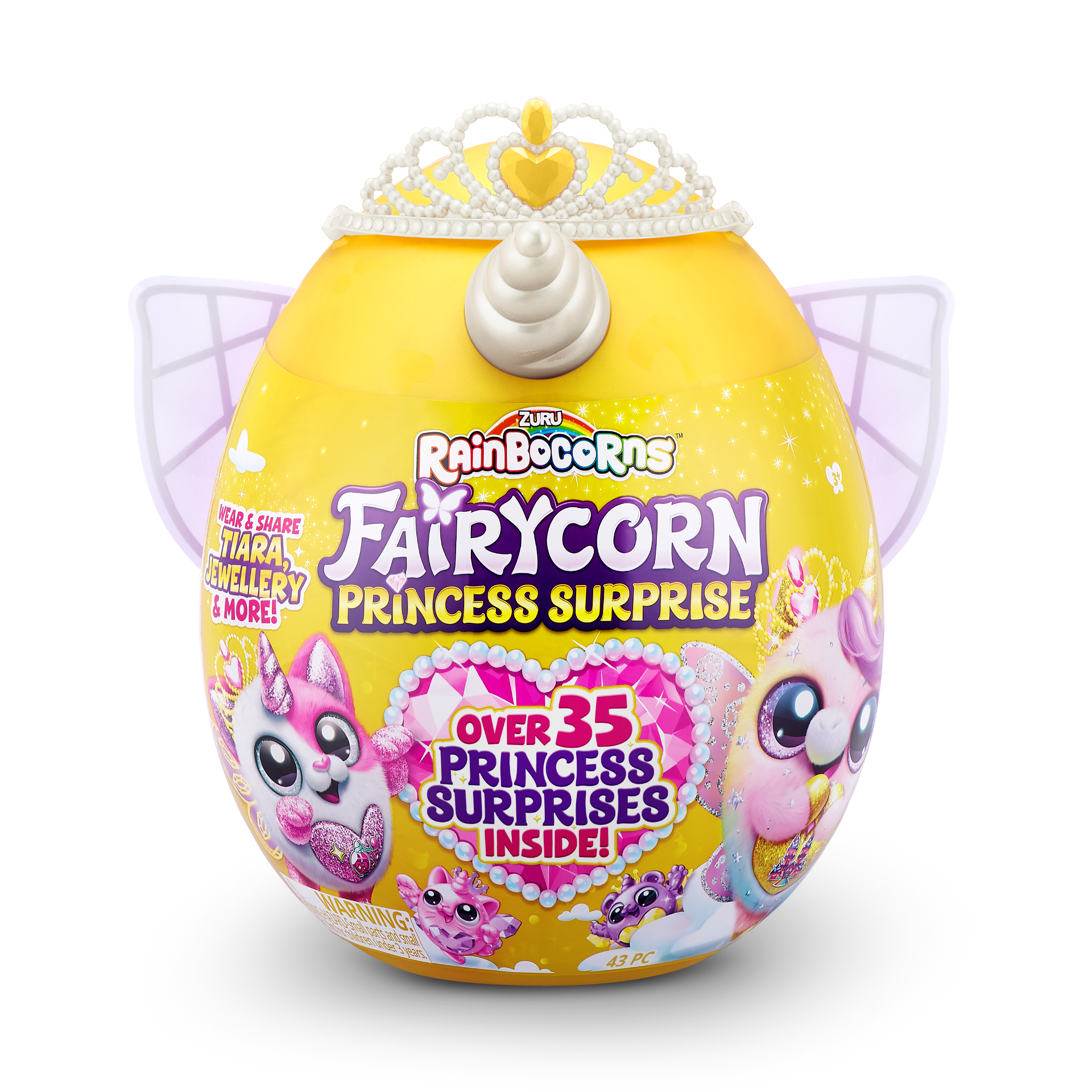 Poznejte královskou rodinu Rainbocornů plného kouzla a vznešenosti! Uvnitř tohoto pohádkového vajíčka se ukrývá více než 35 překvapení, která čekají, až je odhalíte. Při rozbalování se můžete těšit na korunku pro princezny a magickou hůlku, která vám otevře brány magického světa. Proměňte se společně se svým věrným Rainbocornem v pohádkové princezny! Nezapomeňte nasadit křídla, která vám dodají lehkost víly a budete tak dokonale ladit s vaším plyšovým nejlepším přítelem. V kolekci najdete celkem 6 okouzlujících plyšáků! Každý Rainbocorns má kouzelné srdce na hrudi, které můžete odloupnout a odhalit tak, co miluje. Připravte se na nevšední dobrodružství v říši Rainbocorns, kde se setkáte s kouzelným světem naplněným překvapením a pohádkovým leskem! Obsah balení: 1x plyšák princezna 1x křídla se šňůrkou na nošení 1x korunka 1x kouzelná hůlka 1x samolepka ve tvaru diadému na srdíčko 1x srdíčko s překvapením 1x booboocorn víla jako nástavec na tužku ve svém vajíčku 1x náramek 1x korálky 1x přívěsek 12x samolepky 1x sběratelský průvodce