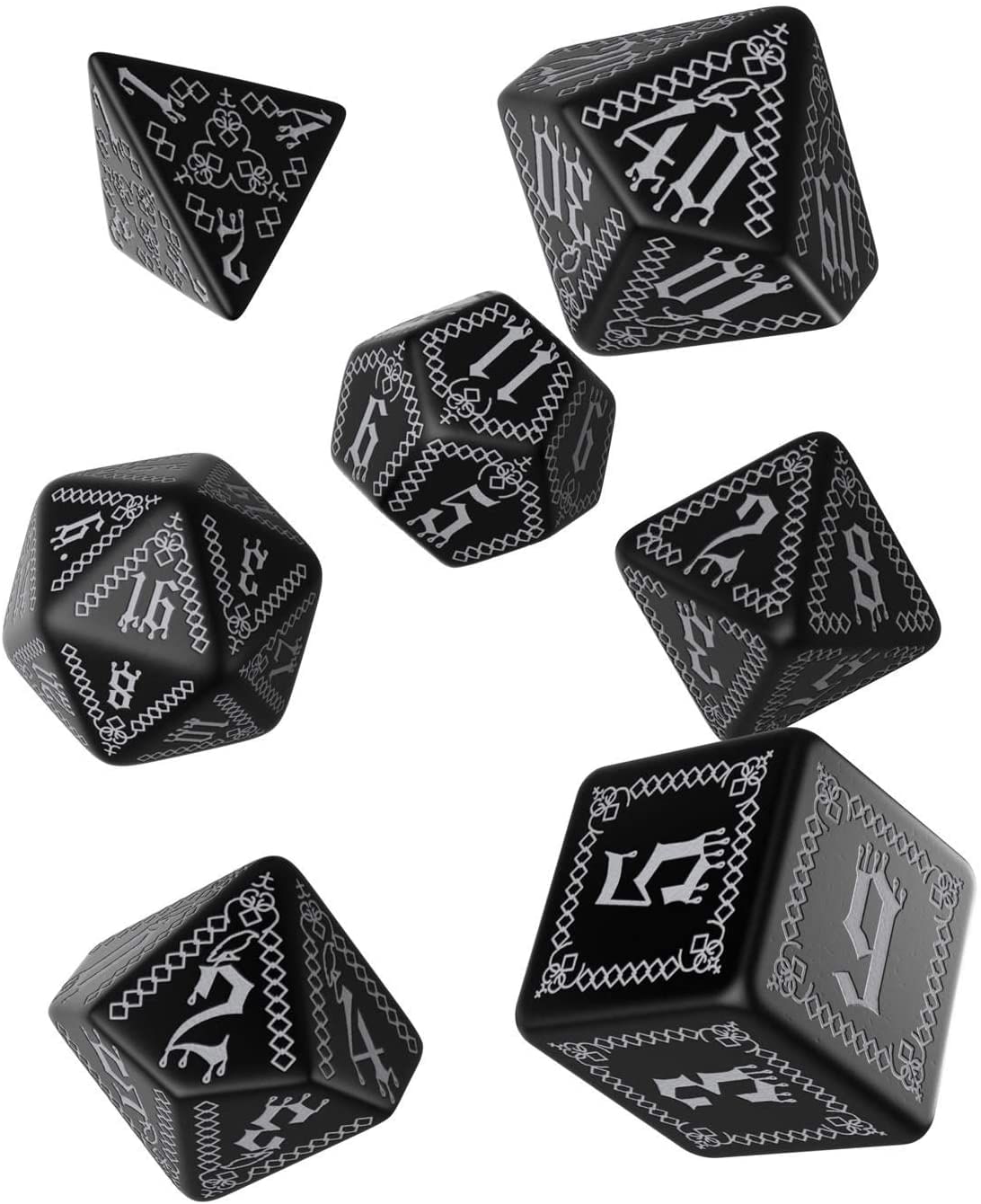 Sada sedmi precizně vyvedených kostek vyrobených na motivy dobrodružství Carrion Crown pro hru Pathfinder. Sada obsahuje: čtyř, šesti, osmi, desíti, dvanácti, dvaceti stěnnou a procentovou kostku.