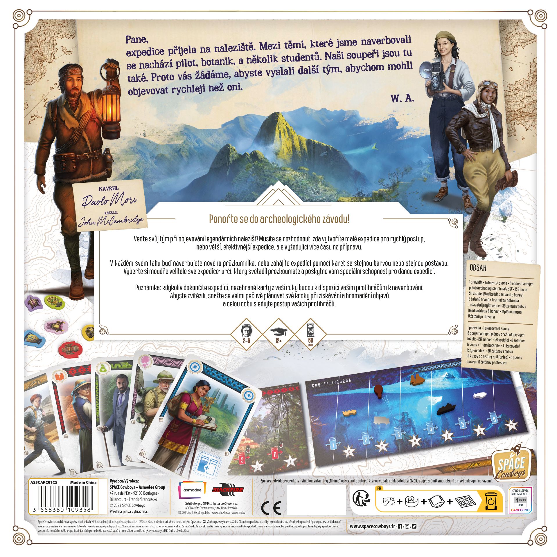 Ponořte se do napínavého archeologického závodu! V deskové hře Archeos Society se stanete vůdcem expedice, který s pomocí svého týmu objevuje legendární naleziště. Strategické plánování, napínavé interakce a opakovatelný herní obsah vás zaručeně vtáhnou a udrží v centru archeologického dobrodružství.