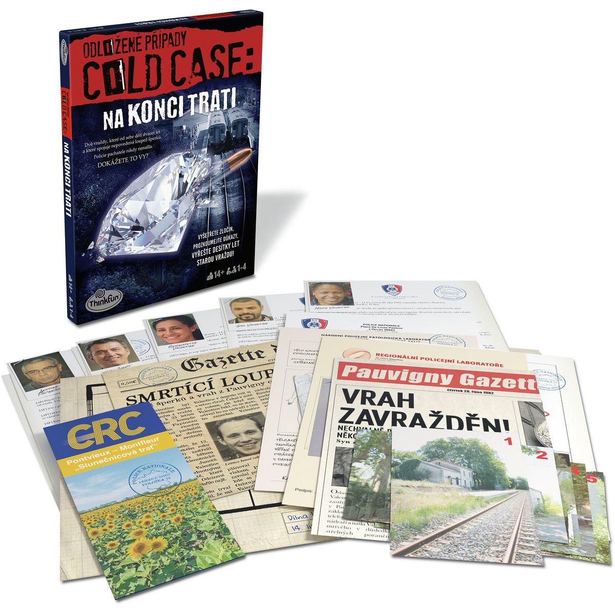 Cold Case - Odložené případy: Na konci trati - VYŘEŠTE ZLOČINY, KTERÉ TOTO FRANCOUZSKÉ MĚSTEČKO STÁLE TRÁPÍ! V roce 1961 se Leonce Junot stal svědkem krádeže ve své šperkařské dílně ve francouzském městečku Pauvigny a byl zastřelen. Policie jeho vraha Henriho Valentina dopadla a odsoudila ho k 25 letům vězení. O dvacet let později, když měl být Valentine z vězení propuštěn, se na stejném nádraží, kde byl před lety zadržen, našlo jeho tělo. V následujících letech nebyla Valentinova vražda nikdy vyřešena a šušká se, že byl nevinný i v případě vraždy Junota. Ve hře Odložené případy: Na konci trati budete vyšetřovat dvě vraždy a pokusíte se tyto zločiny vyřešit. Dokážete to? Uvnitř krabice najdete realistické dokumenty, které se týkají zločinu a které obsahují vše, co k rozluštění případu potřebujete. Prozkoumejte stopy, dejte dohromady důkazy a vyřešte vraždy! Poté své odpovědi odešlete online a zjistěte, zda máte pravdu a zda jste konečně do Pauvigny přinesli spravedlnost, kterou si zaslouží! Hra Odložené případy: Na konci trati se skvěle hodí pro malou skupinu přátel i pro jednoho hráče. Spojuje řešení hádanek a kriminální fikci do pohlcujícího zážitku z vyšetřování. Dokážete tento Odložený případ vyřešit? Hra obsahuje: policejní poznámky, výstřižky z novin, fotografie a výslechy podezřelých, půdorys budovy, fotografie z místa činu, místní mapy, jízdní řády, pitevní a laboratorní zprávy a další důkazy. Obsah opět zabalte a vyzvěte své přátele k vyřešení případu!