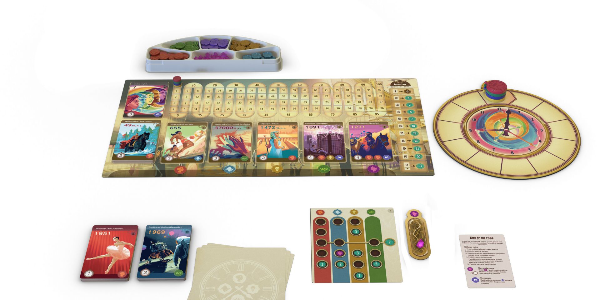 Obsahuje více než 100 karet historie, z nichž každá je krásně ilustrovaná a doplněná poučnými texty, které popisují rozmanité a úžasné dějiny našeho světa. Česká verze hry je 2. edice a obsahuje skvělý sólo mód, který byl v 1. edici vydán zvlášť.